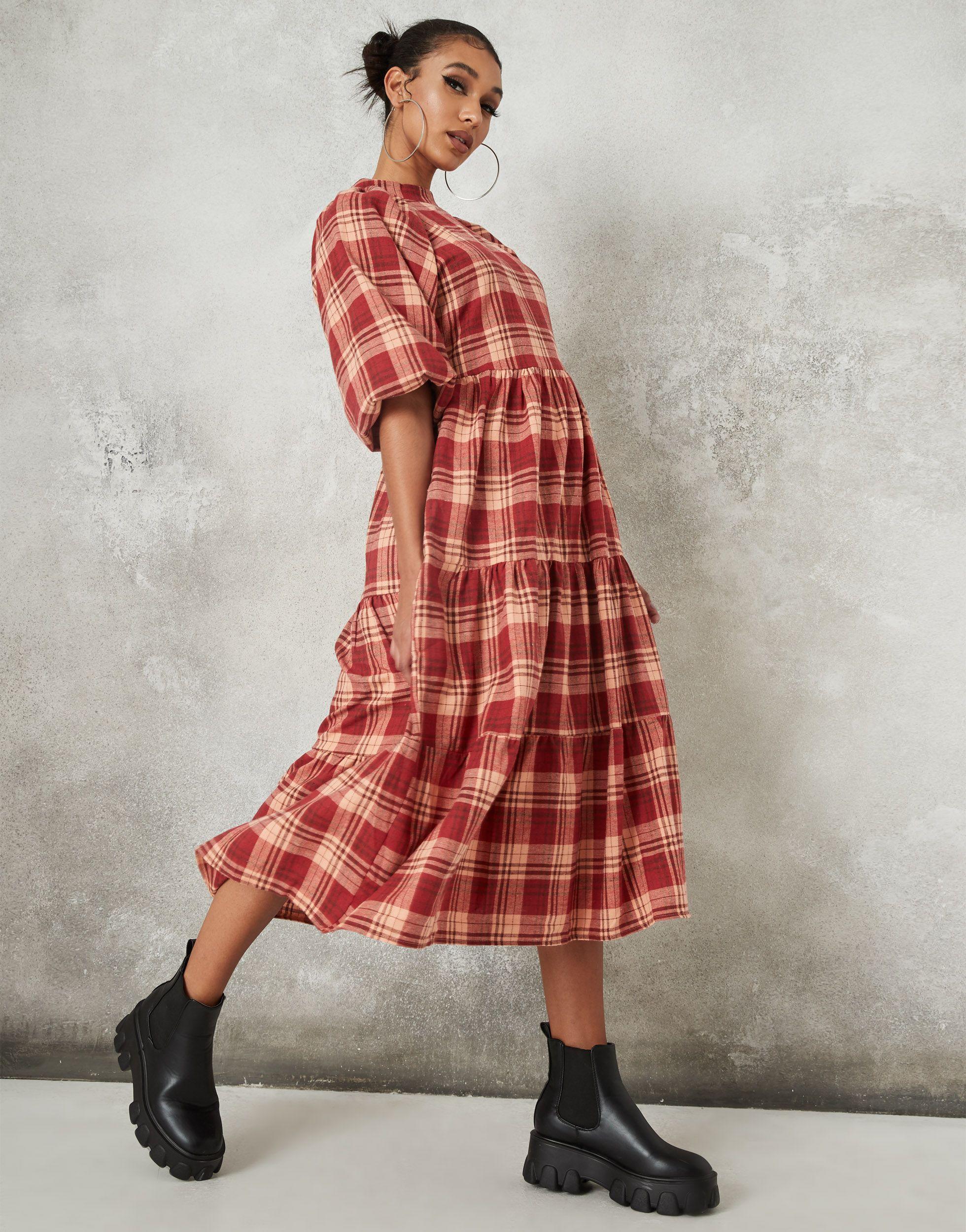 Robe Carreaux Rouge | Robe à carreaux femme zadig&voltaire, mi longue, type chemise. Robe top noir multifonction avec longues manches, dos nu, laçages et pics, gothique rock. Carreaux, encolure ronde, manches volantées, fronces à la taille, boutons dans le dos. Stéphanie loire dans show le matin ! Conçue pour ressembler à un ensemble deux pièces, cette robe comprend un corsage à manches longues avec des volants aux épaules et une jupe évasée à carreaux avec des bretelles.